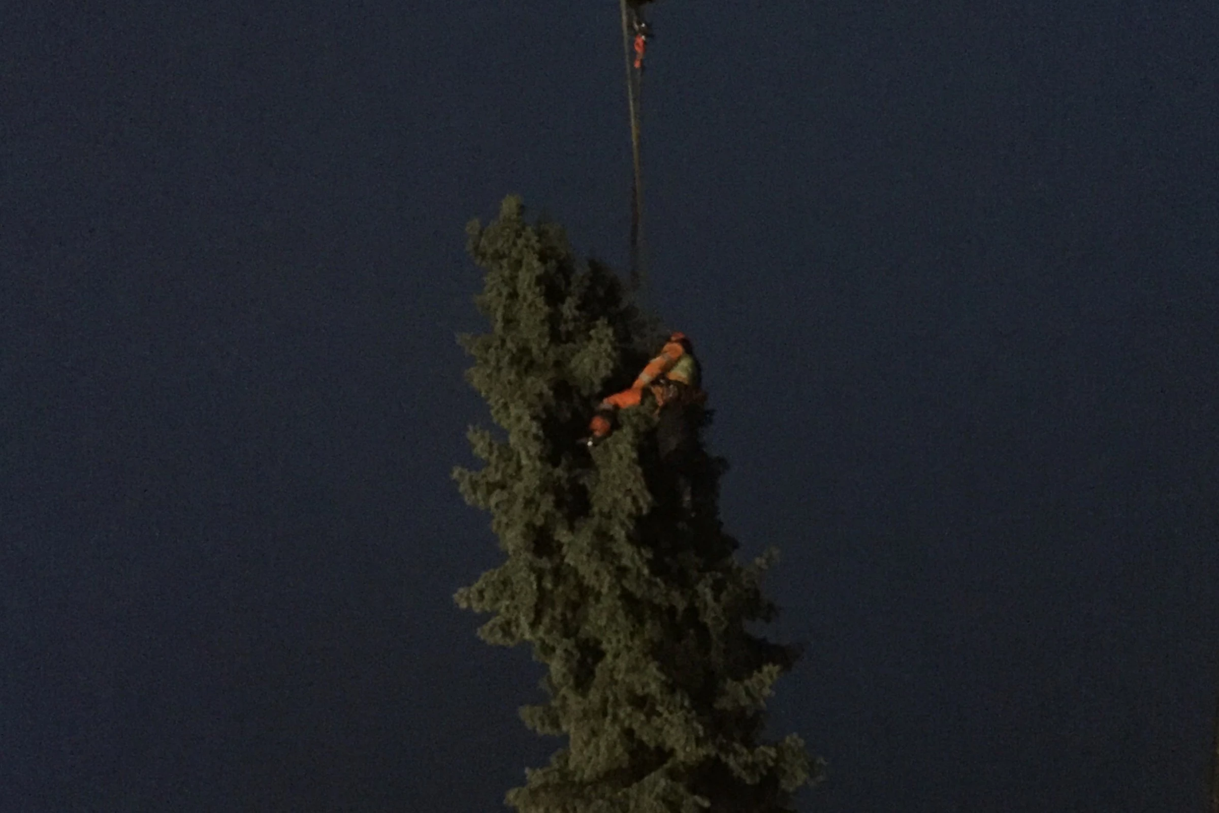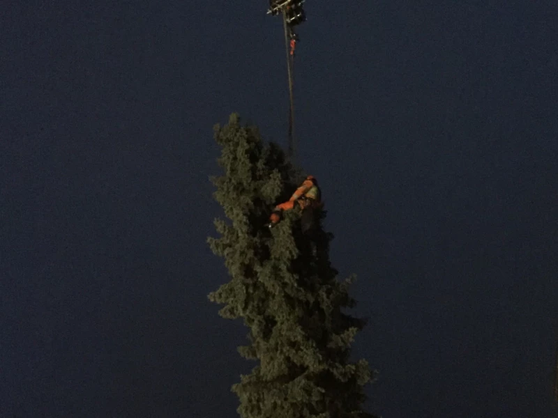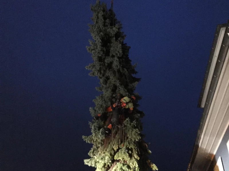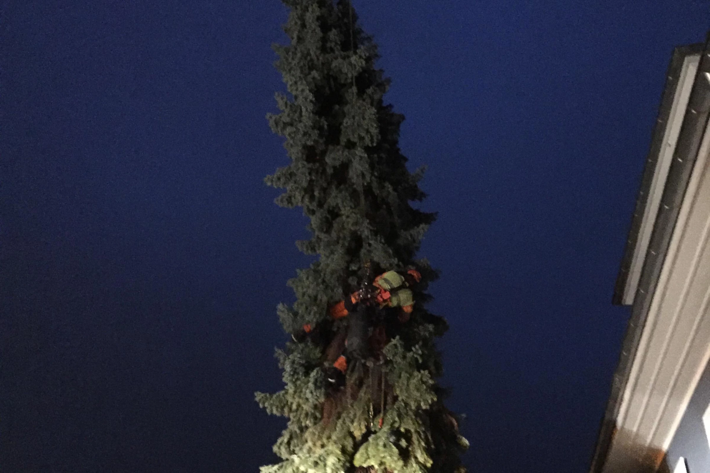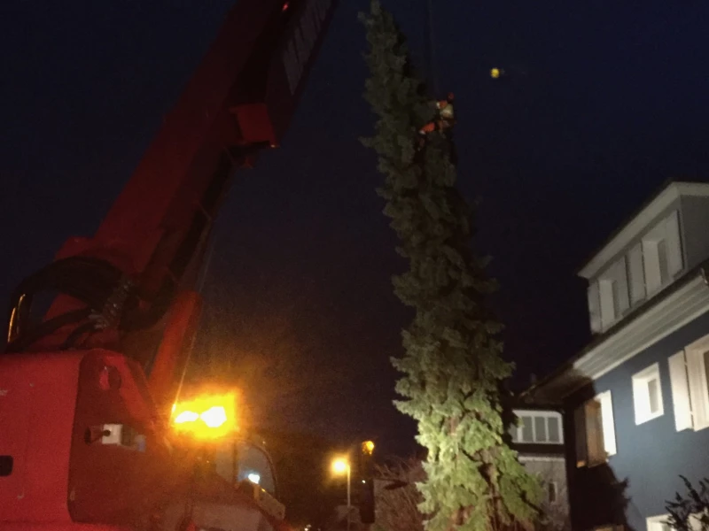 Durch die starken Luftböen und die intensiven Regenfälle in den vergangenen Nächten wurde das Wurzelwerk dieser Fichte teilweise aus dem Boden gerissen. In der Folge hatte der Baum Schieflage. Aus Sicherheitsgründen musste darum diese Pflanze kurzfristig entfernt werden.