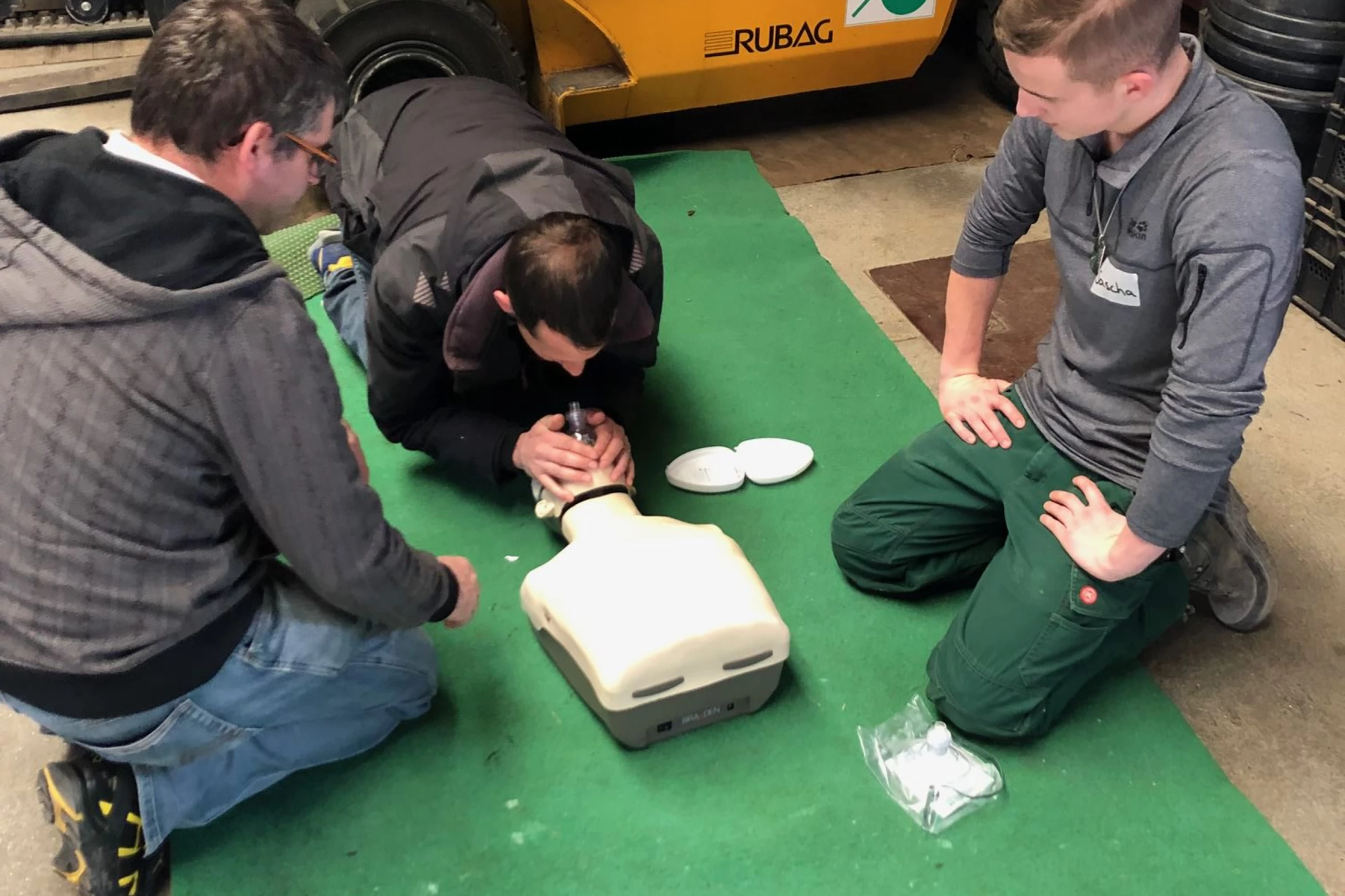 Im Rahmen eines Tageskurses bei uns im Betrieb wurde der Wissensstand unserer Mitarbeiter im Bereich Nothilfe aufgefrischt.